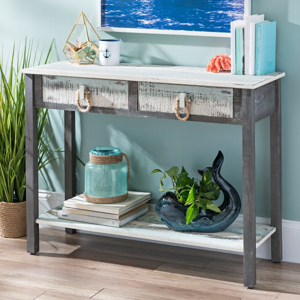 This coastal console table got a new look with wood bleach and a little white paint! Yava teak slice console table in natural. What are the shipping options for coastal console tables? | this rustic modern farmhouse style console table only cost $20 to build! A console table is a perfect spot to create a great display with coastal decor accessories and personal collections. Enjoy free shipping on most stuff, even big stuff. Find furniture & decor you love at hayneedle, where you can buy online while you explore our room designs and curated looks for tips, ideas & inspiration to help you along the way. 50x18x31.75h console table 1 pc pk/ 7.69'. Shop target for console tables in a variety of styles, shapes and materials. Enjoy free shipping on most stuff, even big stuff. Product titlewinado console table with drawer and shelf,sofa table,side desk,entryway. The white coastal seaside console table will inject your living room or bedroom with a heavy dose of nautical style. Console tables for entryway, baysitone wood sofa table with 2 drawers and 2 tiers shelves for living room (antique blue).